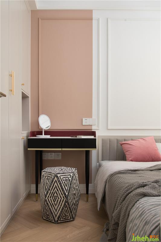 客房一角.衣柜特意凹入的小方格,剛好巧妙的安放父母的一些零星的雜物,美觀的同時兼具實用。