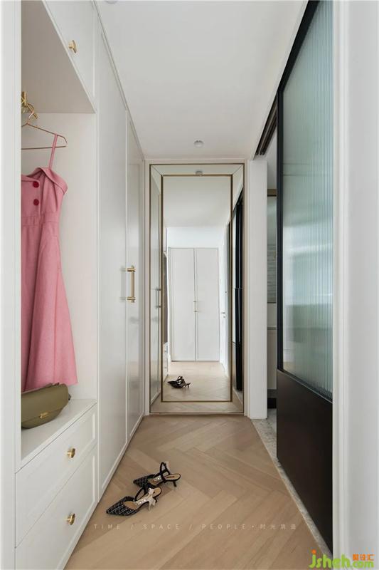 機關(guān)收納四,又是穿衣鏡,又是收納柜,又能反射對面衣柜空間,看起來像一個巨大的衣帽間。