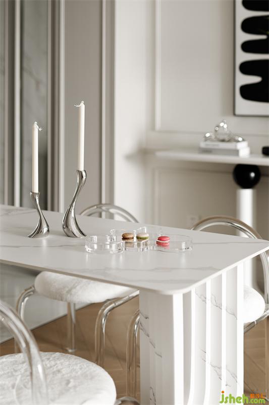 晶瑩剔透的水晶吊燈,絨面亞克力餐椅,溫潤(rùn)的大理石餐桌,清新的氣息撲面而來,法式藝術(shù)設(shè)計(jì)這便是自己喜愛的一個(gè)人獨(dú)有的美食世界。
