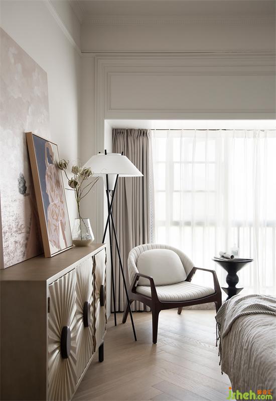 靠窗擺放休閑的單人沙發(fā),輔以邊幾與落地?zé)簦?a href="http://m.domain-2.com/plus/list.php?channelid=18&tid=80&jiazhuang=0&fengge=3500&nativeplace=0" target="_blank">法式度假風(fēng)設(shè)計(jì)形成臥室舒適放松的小角落,一本書(shū)一杯咖啡,居家生活?lèi)芤庀硎堋?