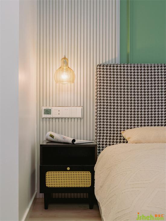 經(jīng)典永恒的千鳥格紋床頭靠背,讓時(shí)尚腔調(diào)不彰自顯,配上簡(jiǎn)約的玻璃吊燈,讓空間更有質(zhì)感。