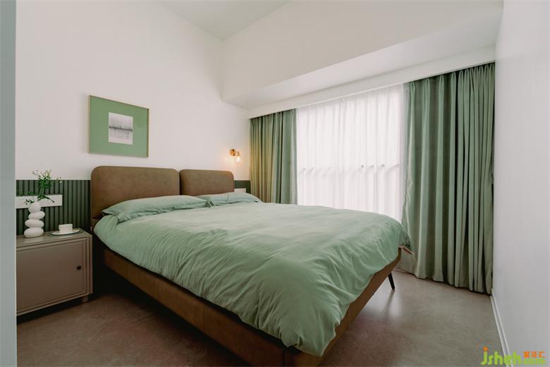 次臥延續(xù)了綠色的主色調(diào),素雅純凈又不會讓空間過于寡淡,為臥室增添些許愜意和生機(jī),家裝設(shè)計營造出自然寧靜的睡眠氛圍。