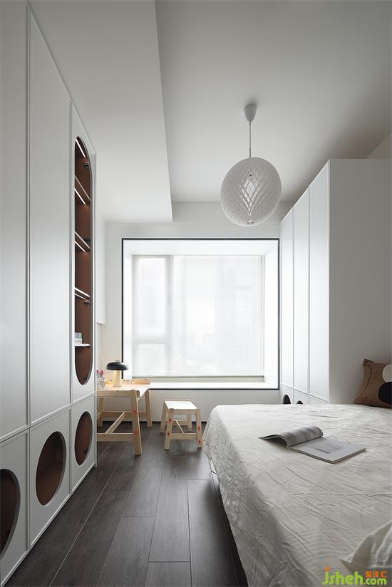 飄窗同樣采用木飾面包裹,周圍以黑色鑲邊,整個(gè)區(qū)域充滿懸浮感,更加獨(dú)立愜意。