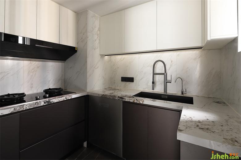 廚房自身條件沒有改動空間,狹小閉塞 ,采光不足。我們根據(jù)環(huán)境打造最便捷省力的U型布局,臺面以及墻面均選擇亮色巖板,吊柜也全部以奶白色為主,家裝設(shè)計盡量營造清爽明亮的空間氛圍,地柜呼應(yīng)公區(qū),讓顏值與性能二者兼?zhèn)洹?
