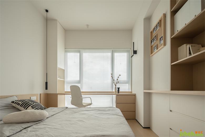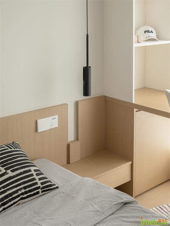 床頭另一側(cè)打造一體式床頭柜,留白處理呼應(yīng)全屋細(xì)節(jié),呈現(xiàn)隨性不刻板的空間氛圍,黑色吊燈亦是做到了整屋統(tǒng)一,小心機(jī)彰顯設(shè)計(jì)的溫度。
