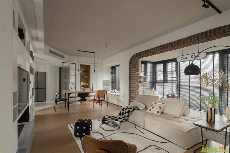 餐廳飄窗和陽臺埡口打造成同樣的弧度,兩個生活核心區(qū)相互照應(yīng),一大一小兩個弧形框,深圳南山東關(guān)樂尚林居家裝設(shè)計(jì)給人和諧舒適的溫馨感受。