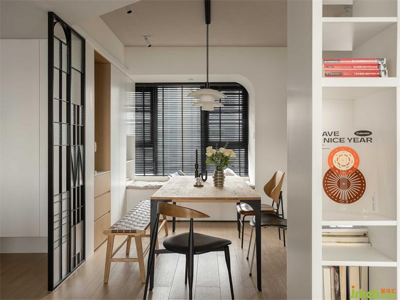 客餐區(qū)窗戶均為黑色鋁百葉,與鐵藝屏風(fēng)形成對照,強(qiáng)調(diào)北歐風(fēng)的工業(yè)感,餐桌椅也多以黑色作為點(diǎn)綴,統(tǒng)一空間色調(diào),深圳南山東關(guān)樂尚林居家裝設(shè)計(jì)營造和諧大氣的風(fēng)格氛圍。