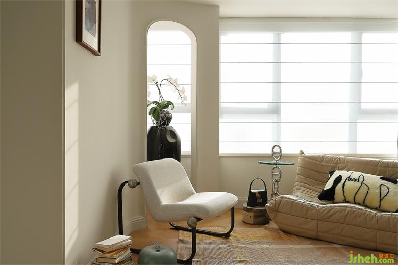 墻面做出拱門造型,空間產(chǎn)生折疊感,層次立體且藝術(shù)感滿滿。遮光簾帶來柔和光影,懶人沙發(fā)隨意擺放,沒有刻意的規(guī)則,滿眼隨性與輕松。