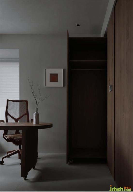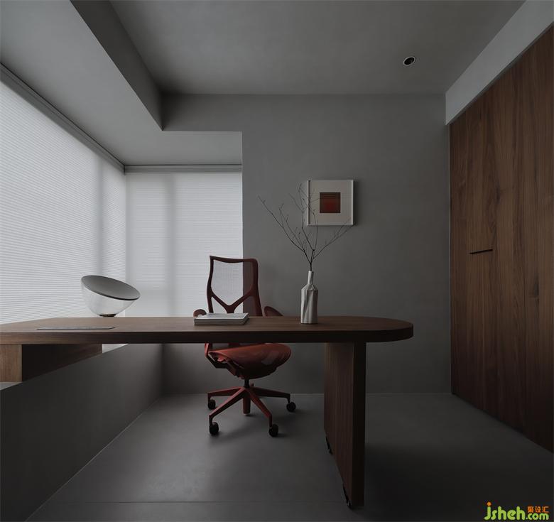遮光簾讓光影朦朧,搭配墻面統(tǒng)一的微水泥材質(zhì),散發(fā)寧靜悠遠(yuǎn)的治愈氛圍,侘寂美學(xué)也悄然迸發(fā)。