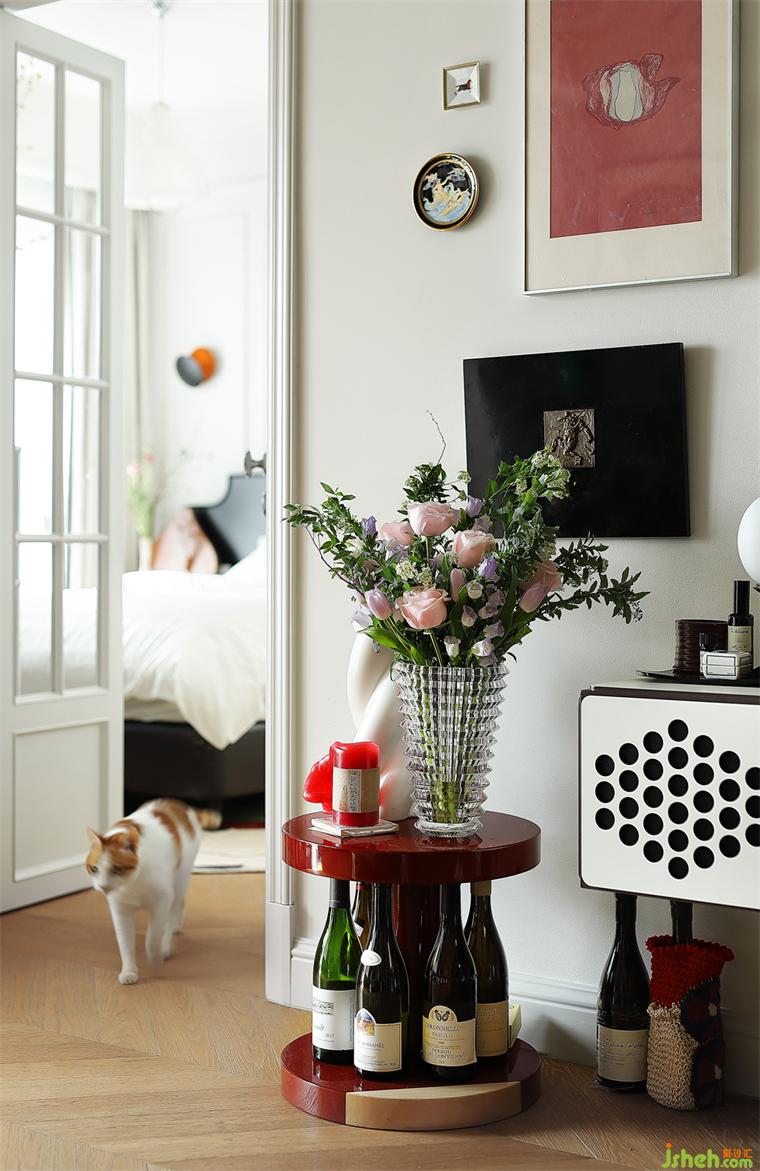 因?yàn)闃I(yè)主自己也是做設(shè)計(jì)相關(guān)的,選擇這種風(fēng)格是因?yàn)樗嗄暝诜▏沁吜魧W(xué)的一個經(jīng)驗(yàn),然后她經(jīng)常住的是法國老公寓,當(dāng)然也希望自己的家也是法國老公寓的這種風(fēng)格;這種風(fēng)格最大特點(diǎn)就是會有法式的基礎(chǔ),通過業(yè)主的職業(yè)特征或者生活習(xí)慣,會添加自己很多的喜好在里面,因?yàn)榉孔硬皇呛艽?,業(yè)主有很多的收藏,最后呈現(xiàn)出來就比較滿一點(diǎn)。