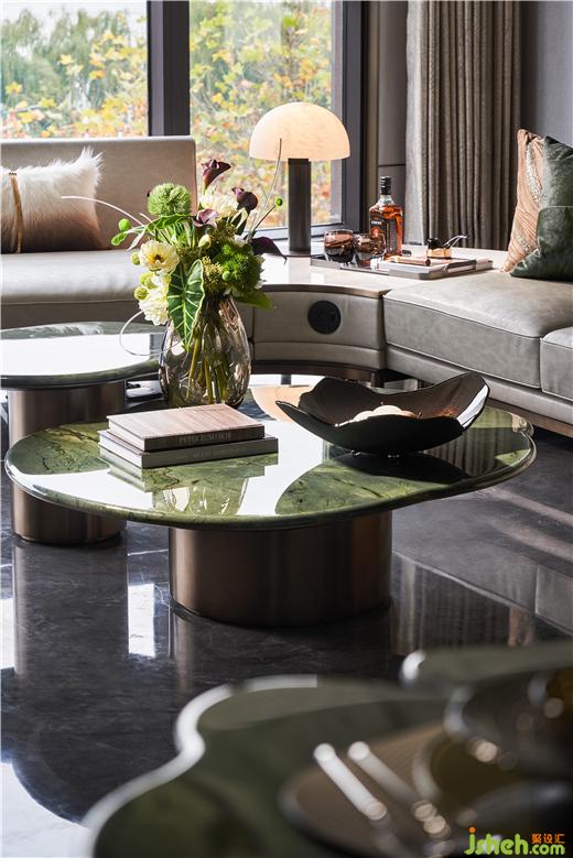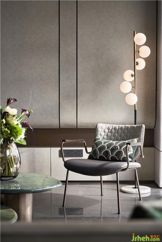 瓦松綠不過(guò)分艷麗,也不過(guò)于隱匿,是一種高級(jí)、優(yōu)雅、溫柔的綠色,是冷清中擁有生機(jī)感的綠色。以瓦松綠點(diǎn)綴空間,讓整個(gè)空間既有蓄勢(shì)的氛圍,又有向上的張力。