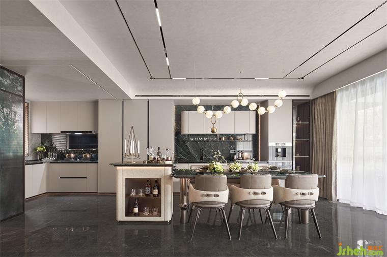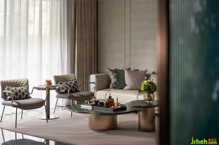 深入向前,客廳似一幅畫卷徐徐展開,闊綽尺度,奢適無界,開放舒展,視線寬敞。特色捫皮、夾絲玻璃與真絲面料強調(diào)卓越品質(zhì),不銹鋼與石材在碰撞中催生別樣美感。樣板間設(shè)計自然優(yōu)雅的氣息彌漫整個空間,包容、隨性的生活理念也在盡情蔓延。