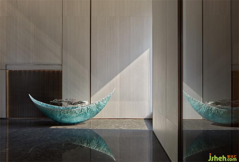琉璃制作的舟形藝術(shù)品則化作路引搖曳,帶領(lǐng)觀者邂逅更多驚喜,置于其中的朵朵繁花與前廳遙相呼應(yīng),悄然刻畫在地元素,增添些許靈動姿態(tài)。