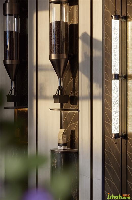 踱步向前,再覓佳境。墻面陣列的展示裝置勾勒大氣格調(diào),也通過獨(dú)特的造型與咖啡豆的清香打破一室沉悶,順暢實(shí)現(xiàn)場域的趣味轉(zhuǎn)換。