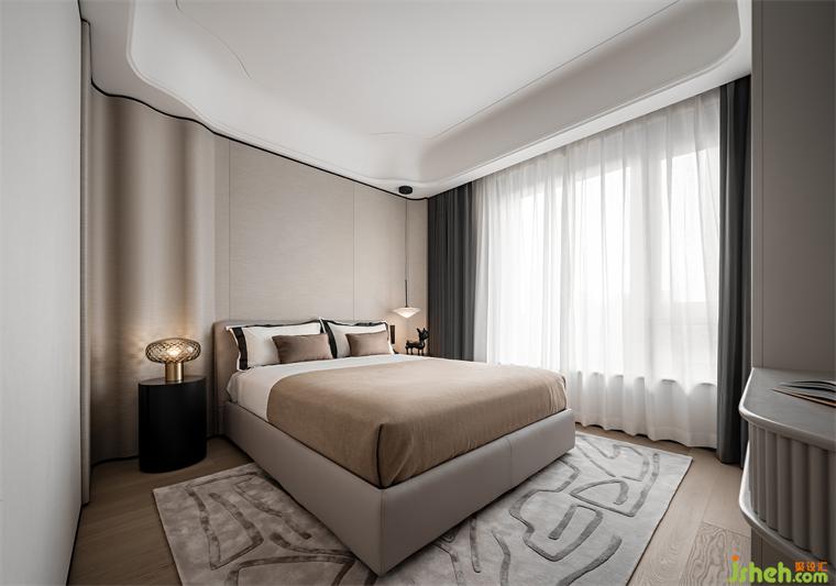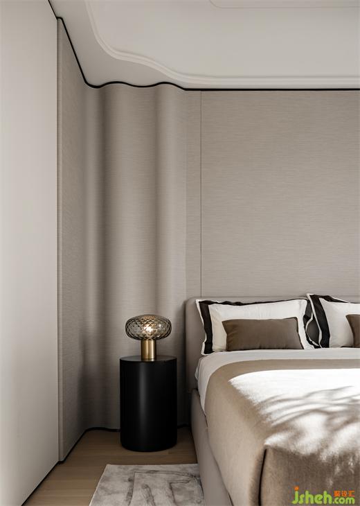 兩個(gè)次臥也浸潤(rùn)于柔和雅致的灰調(diào)之中,大平層設(shè)計(jì)延續(xù)主臥簡(jiǎn)約的設(shè)計(jì)手法,墻面選用天然織物鋪就,共同構(gòu)筑柔和且堅(jiān)固的堡壘,庇護(hù)身心。