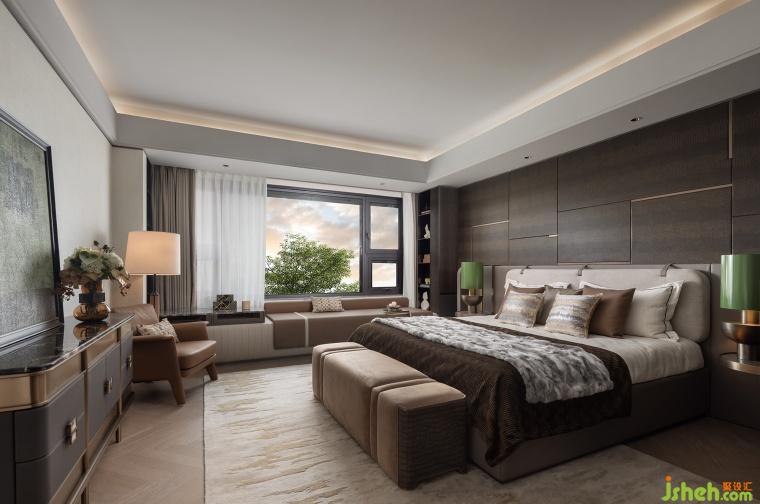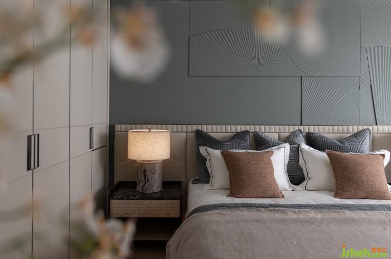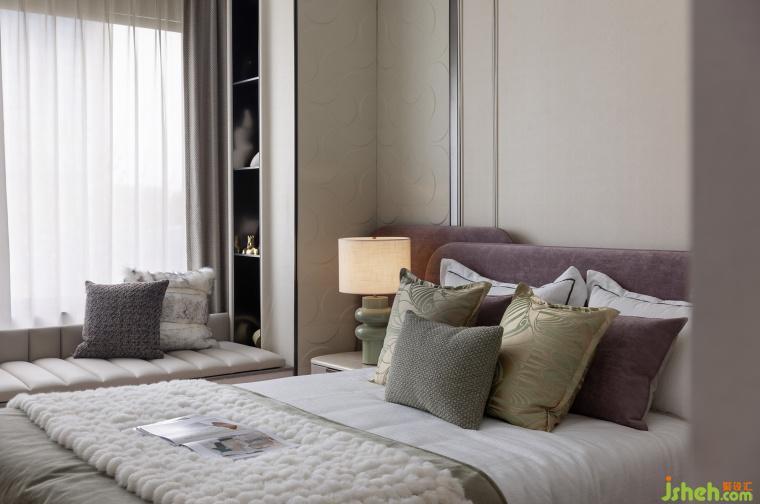 次臥延續(xù)開篇儀式感,以特殊工藝手法打造的床背極具特色,床頭柜與飄窗一體鏈接,與整體流線相結(jié)合,勾勒出豐潤舒暢的狀態(tài)。突出的材質(zhì)紋理,以涓涓細(xì)流述說著生活的詩意。
