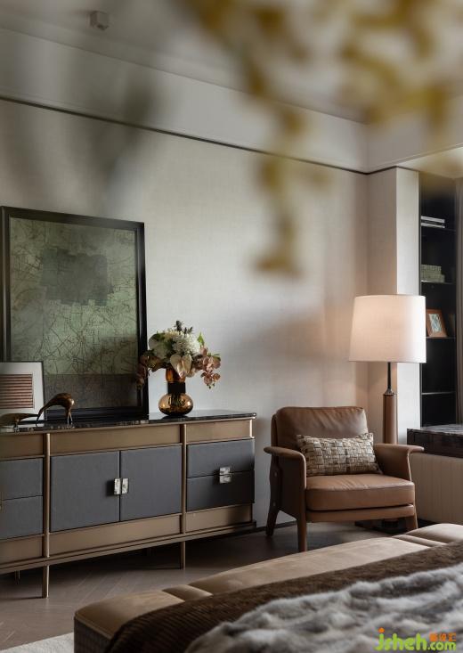 樣板房設(shè)計(jì)墻面大量運(yùn)用特色蜥蜴皮、絲質(zhì)面料以強(qiáng)調(diào)卓越品質(zhì),并通過夾絲玻璃實(shí)現(xiàn)虛實(shí)結(jié)合,營造一種隔而不斷的朦朧美,自然優(yōu)雅的氣息彌漫而出,包容、隨性的生活理念也在盡情蔓延。