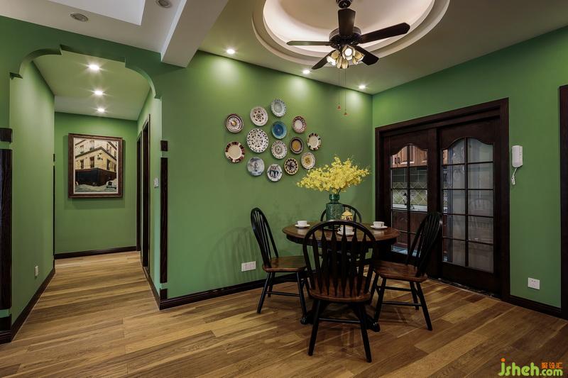 綠色,就是美好的開始。懷著這份期許,室內(nèi)設計師大膽的把墻體整面整面刷綠,室內(nèi)設計師在家具選擇了比較具有厚重感的美式風格,再搭配明黃色等亮色軟裝,整體效果干凈明了,像一棵大樹,有穩(wěn)穩(wěn)的根,有茂密的葉,有鮮艷的花,渾然一體,自然和暢。