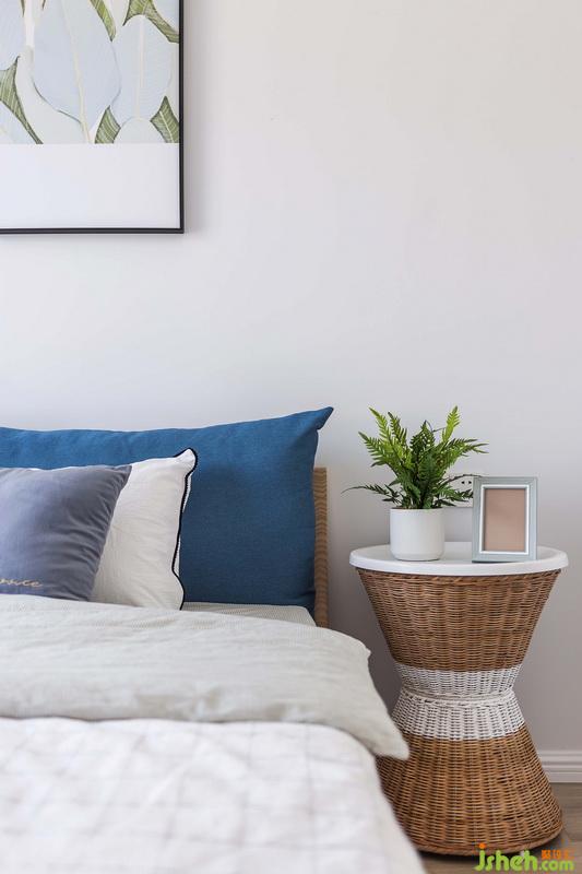木質(zhì)與藤編家具搭配小盆綠植,帶來(lái)一份清新自然