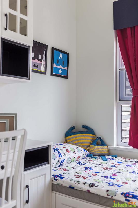 兩個(gè)男孩的四口之家,另一個(gè)男孩房延續(xù)卡通主題,打造儲(chǔ)物與就寢兼具的兒童房
