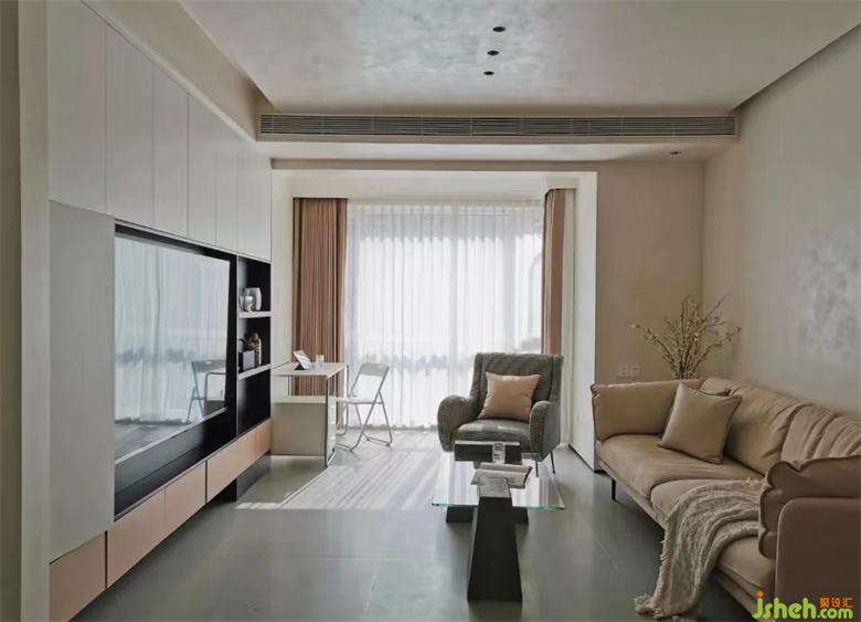 墻面用啞光色打底,在自然光的映襯下,增添了幾分舊時情懷。家裝設(shè)計窗簾、沙發(fā)、柜體的顏色源于自然,暖光咖色代表大地,間錯有致,呈現(xiàn)出一種井然有序的樸實氛圍。