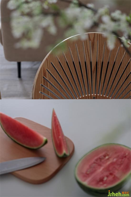 造型獨(dú)特的茶幾(插播:自己手工做的噢) 是整個(gè)空間最“另類”的存在,家裝設(shè)計(jì)在規(guī)矩中尋求突破,讓人眼前一亮。