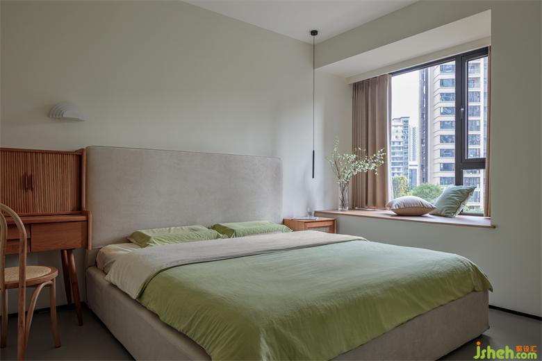 一邊是床頭柜,一邊是梳妝柜,打破傳統(tǒng)的對稱布局,是多元審美的詮釋與踐行。