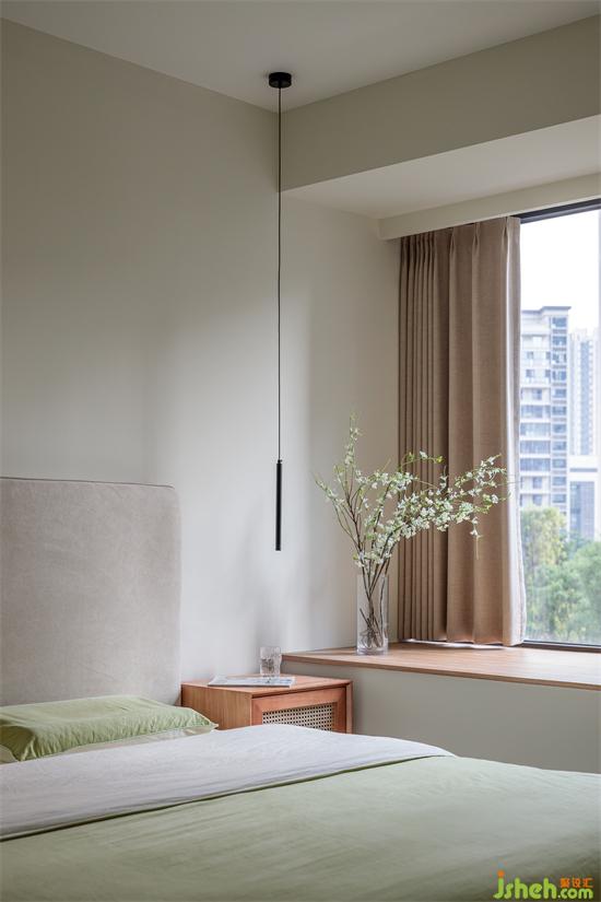 家裝設(shè)計精巧,氛圍溫馨,低飽和色讓整個臥室空間呈現(xiàn)出一種安然靜謐之感。