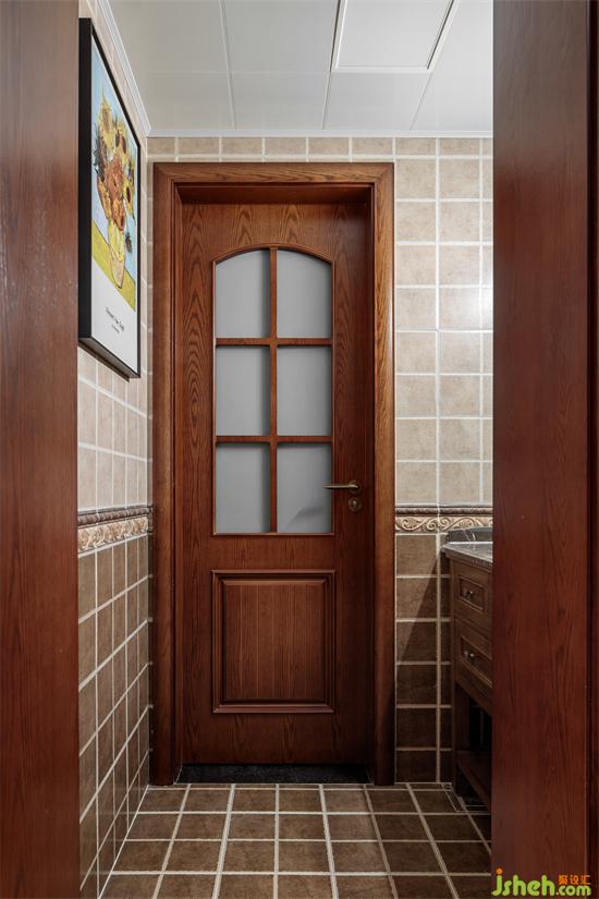 The top surface is transparent and clean, with no ceiling design, which is in sharp contrast with the elegant and thick waist solid wood parapet of the whole house. It does not affect the lighting, but also has aesthetic feeling. The TV wall design of similar closets is made of fragmented brick walls, which is integrated into the whole space, and the temperament is more unique.