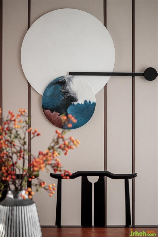 墻面、頂面線條方正,空間布局對稱平和,體現(xiàn)出儒家傳統(tǒng)思想中的“中庸之道”。家裝設計色彩搭配一深一淺,暗合道家“太極陰陽”之法。二者相得益彰,渾然一體。
