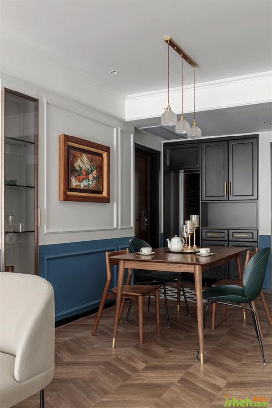 現(xiàn)代北歐桌椅搭配古典油畫,家裝設(shè)計(jì)幾何線條增加復(fù)古莊重感。簡而不繁,只需寥寥幾筆。