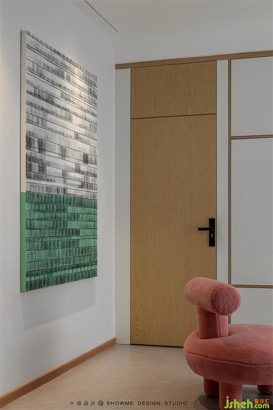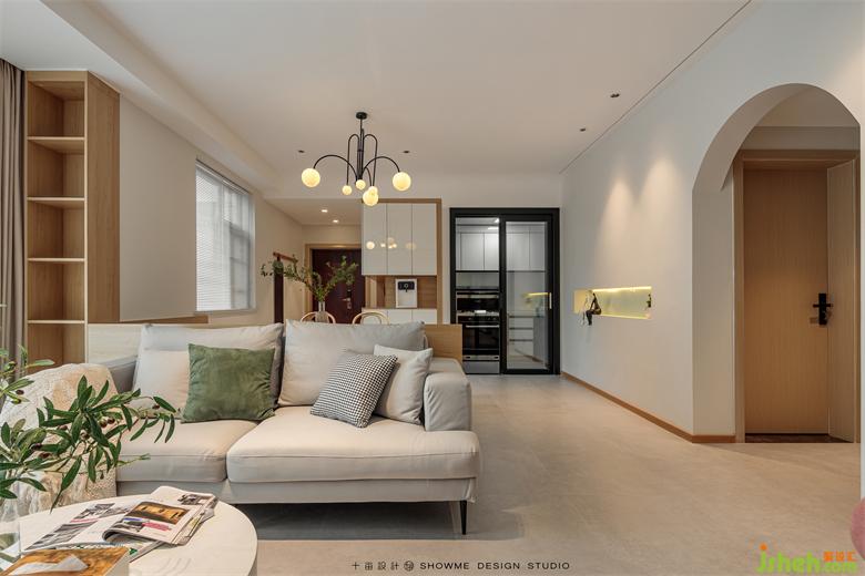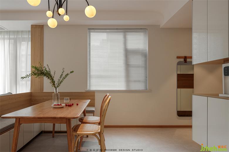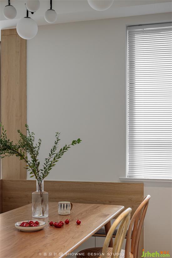 陽光透過百葉窗,均勻地灑進屋里。家裝設計清新的白色和溫暖的木色搭配在一起,所有的煩躁不安在這一刻被治愈,空氣也變得寧靜溫柔起來。