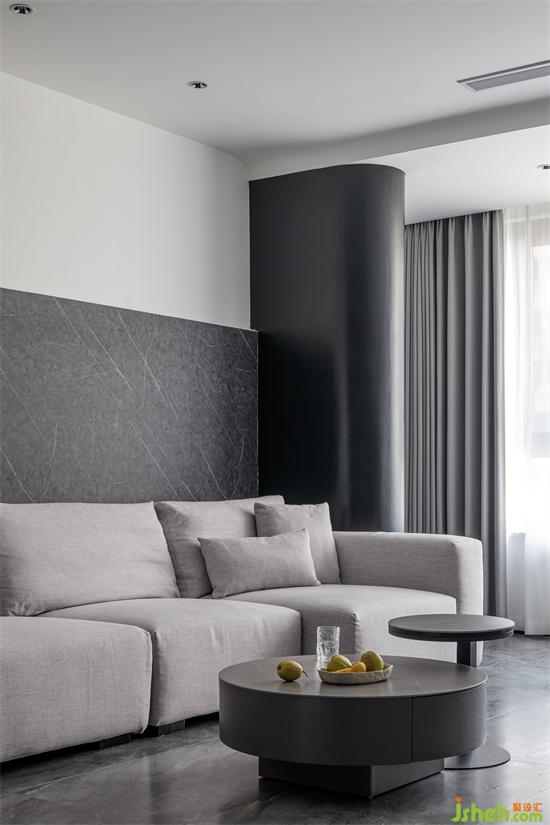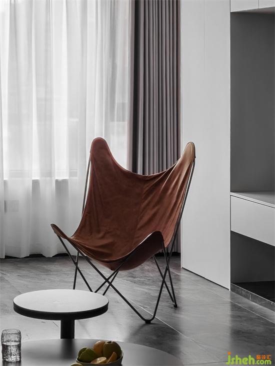 在客廳與陽臺間的分隔線則用曲線加以柔和,家裝設計營造出更為飽滿的輪廓。