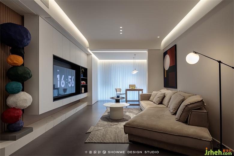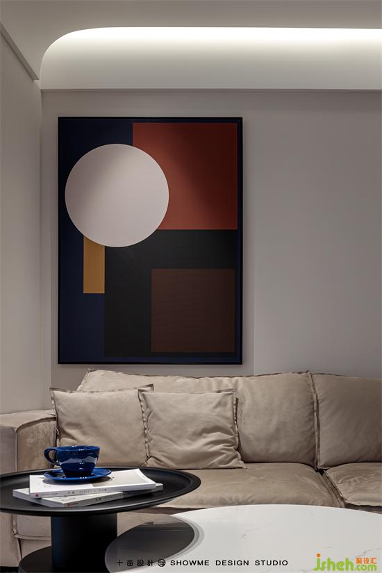 客廳的家具搭配打破傳統(tǒng)規(guī)則的L型沙發(fā)+方形茶幾,改為翅膀型沙發(fā)+圓形錯位茶幾的組合,靈活性和實(shí)用性都大大增強(qiáng)。