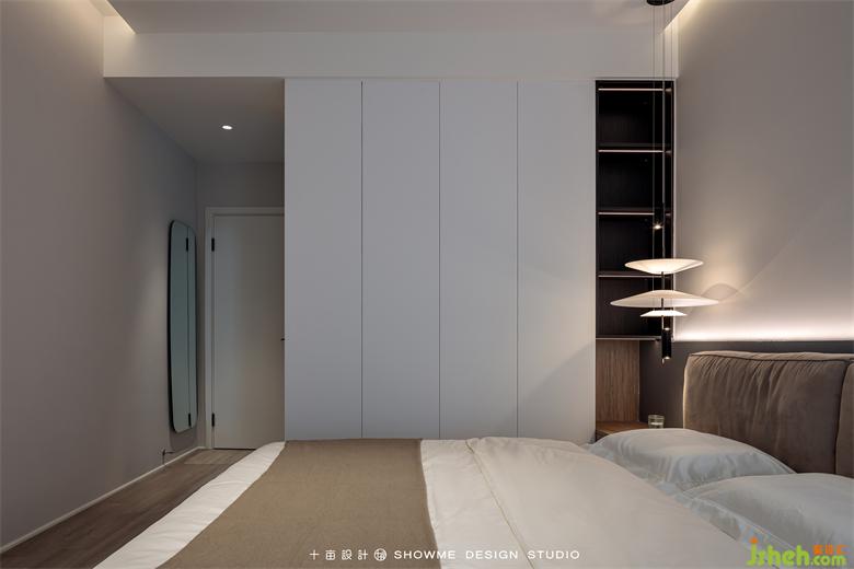 雙人床寬敞柔和,配上屋主精心挑選的床頭創(chuàng)意吊燈,家裝設(shè)計(jì)精致又充滿格調(diào)的臥室空間讓人心動(dòng)不已。