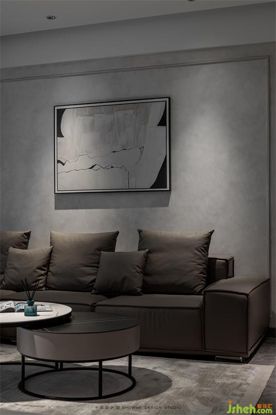 黑白灰搭配出來(lái)的效果從來(lái)都不會(huì)差。經(jīng)典的配色給客廳奠定了沉穩(wěn)大氣的旋律,地面用深色條紋亮面磚更是一種大膽的選擇。