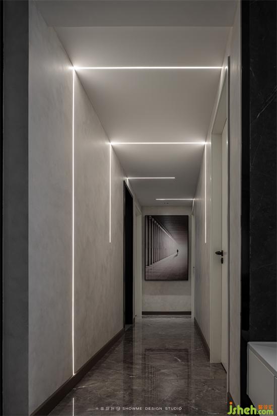 線性燈帶營造出動與靜的變化,是整個空間最亮眼的設(shè)計(jì)。