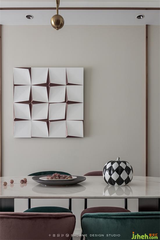 餐廳以簡(jiǎn)約實(shí)用為主,摒棄過(guò)度的裝飾,在餐桌墻上只需一副凹凸有致的掛畫(huà),頤和上院家裝設(shè)計(jì)空間效果立馬提升起來(lái)。