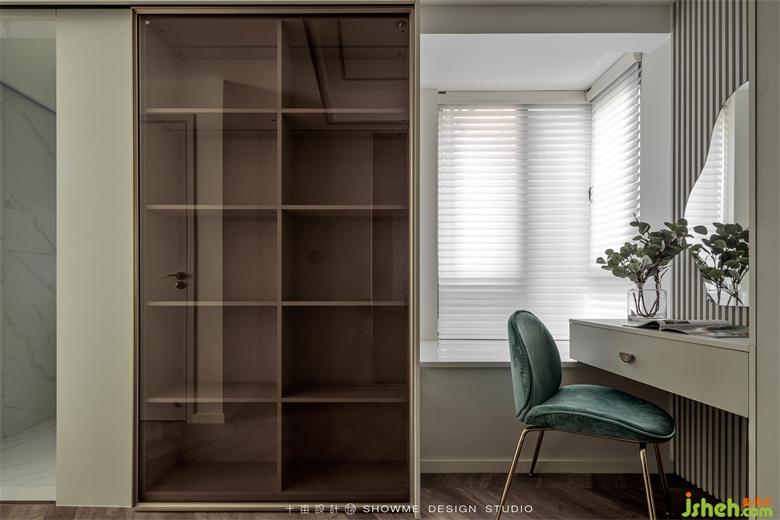 用吊滑門設計,既能保護隱私空間,又能作為衣帽間展示柜的柜門,是一門兩用的典范。