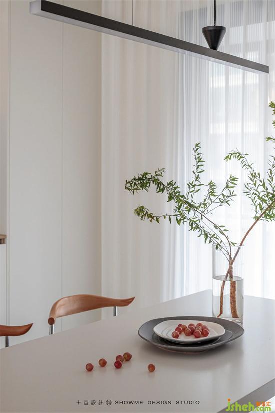 入戶的左手邊是餐廳區(qū)域,方正的格局讓用餐空間顯得特別開闊明亮。