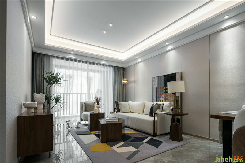 B戶型作為剛需戶型,既滿足一家三口的居住空間,有需要滿足長(zhǎng)輩的共住需求?,F(xiàn)代溫馨的設(shè)計(jì)風(fēng)格會(huì)有一種“家”的感覺(jué)。樣板房設(shè)計(jì)