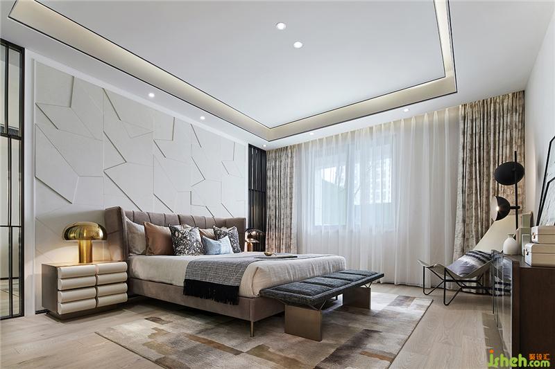 移步主臥,設(shè)計師回應(yīng)了對經(jīng)典時代的懷念,并進行當代再造,主臥色調(diào)溫馨柔和,家具輪廓瑰麗華美,奢華大氣,無一不流露著那份高貴典雅,營造溫馨華貴的海派氣氛,落地燈與小邊幾的金屬質(zhì)感,在令人回望老上海的摩登與高貴時,亦更沉醉于現(xiàn)代生活的精致。