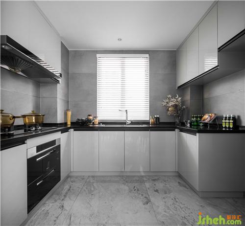 空間布局依據(jù)行動(dòng)路線與邏輯原則劃分,開放式客餐廳與廚房連成一線,客餐廳超寬幅飄窗將窗外景色盡數(shù)納入,并提供充足的光線,使得整個(gè)空間通透而明亮。