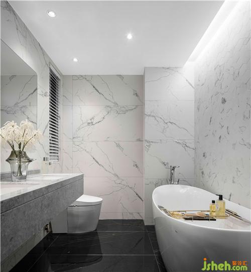 主衛(wèi)以黑白灰為主色調(diào),整個(gè)空間呈現(xiàn)出干凈得體、溫文爾雅的姿態(tài)。