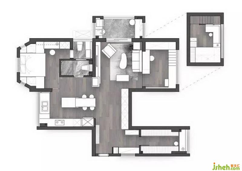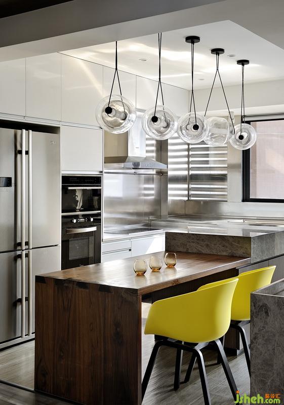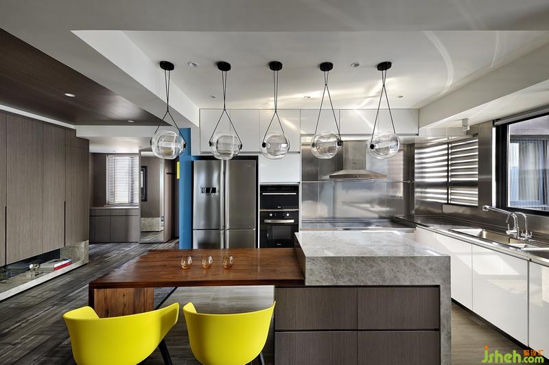 品質(zhì)生活看廚房,我們?cè)O(shè)計(jì)公司的設(shè)計(jì)由此展開(kāi),開(kāi)放式的廚房,書房,與客廳,主臥共同形成像“翠玲瓏”一樣強(qiáng)化斜向?qū)蔷€的景深,將八十平的小屋視線最大化。