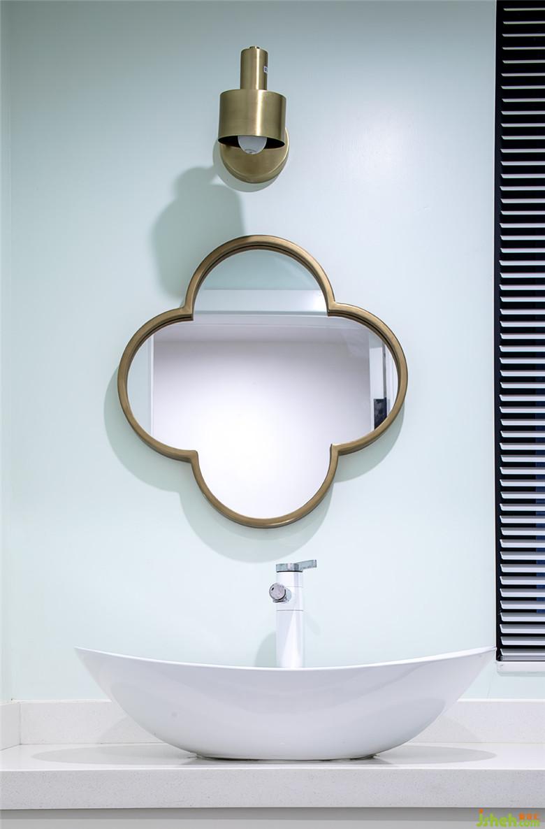主衛(wèi)沒(méi)有設(shè)計(jì)淋浴,墻面做的防水乳膠漆,并選擇了安靜清爽的綠色,使整個(gè)空間看上去非常舒適。巧妙的儲(chǔ)物柜也解決了大部分的收納問(wèn)題。