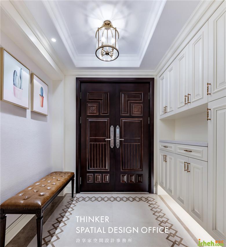 溫馨是隱藏在空間中的情感密碼,給人帶來靜謐卻強(qiáng)大的安全感。大空間往往會讓人感覺有距離感,所以室內(nèi)設(shè)計師在玄關(guān)處選擇了簡潔大方的空間布局,懸空式玄關(guān)柜讓空間更顯輕盈,咖啡色真皮椅帶來溫馨的舒適感,而燈光與裝飾畫的配合,將藝術(shù)融入生活。