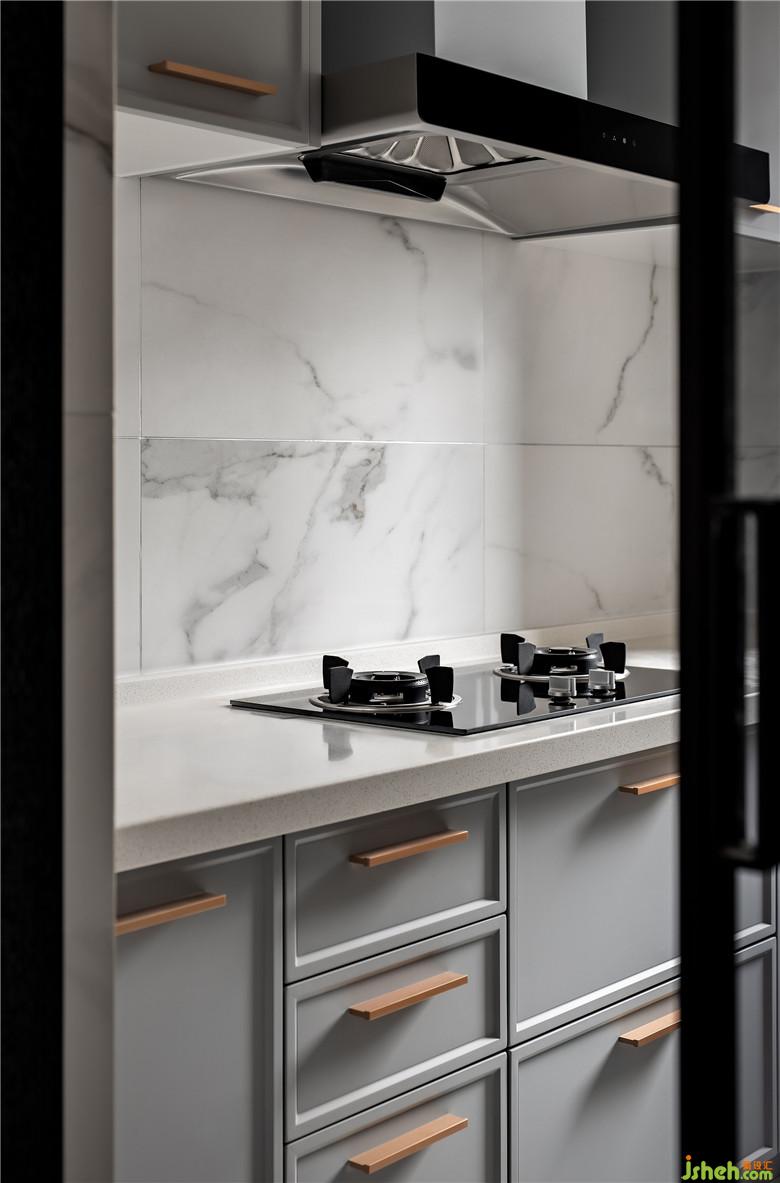 · 線條利落的灰色模壓板,搭配大理石紋的石材,為空間帶來清淡柔和的優(yōu)雅質(zhì)感。