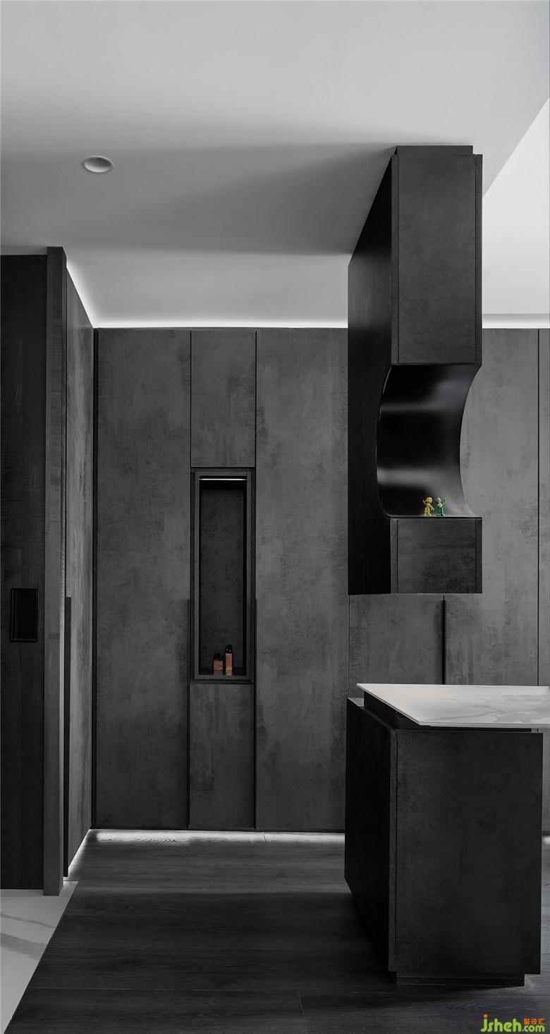 · 黑色木質(zhì)柜體稍顯沉重,我將柔和的線性燈光,設(shè)計在層疊的柜體底部及頂部,吸引了視覺效果外,也讓厚實感的木質(zhì),變得更加輕盈、親和。裝修公司