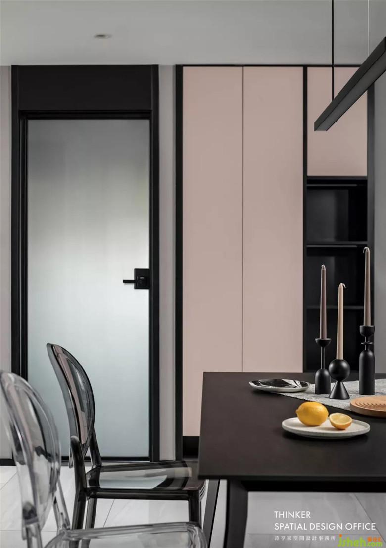 餐廳以淺粉為底色,運(yùn)用黑色勾勒出空間輪廓,神秘的黑色和柔美的粉色相遇,帥酷中的溫柔,最是動(dòng)人。
